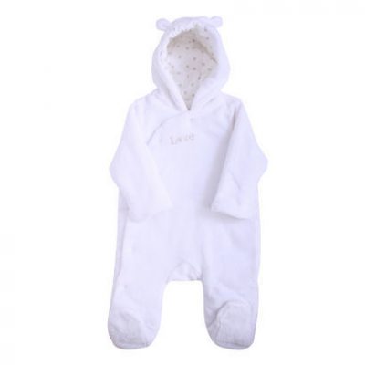 Bộ body dài tay, liền tất giúp giữ ấm cho bé, bé không bị cấn áo lên hay gió lùa vào phần bụng. Bộ body còn có mũ chùm đầu phía trên, giúp phần đầu của bé luôn được ấm áp.